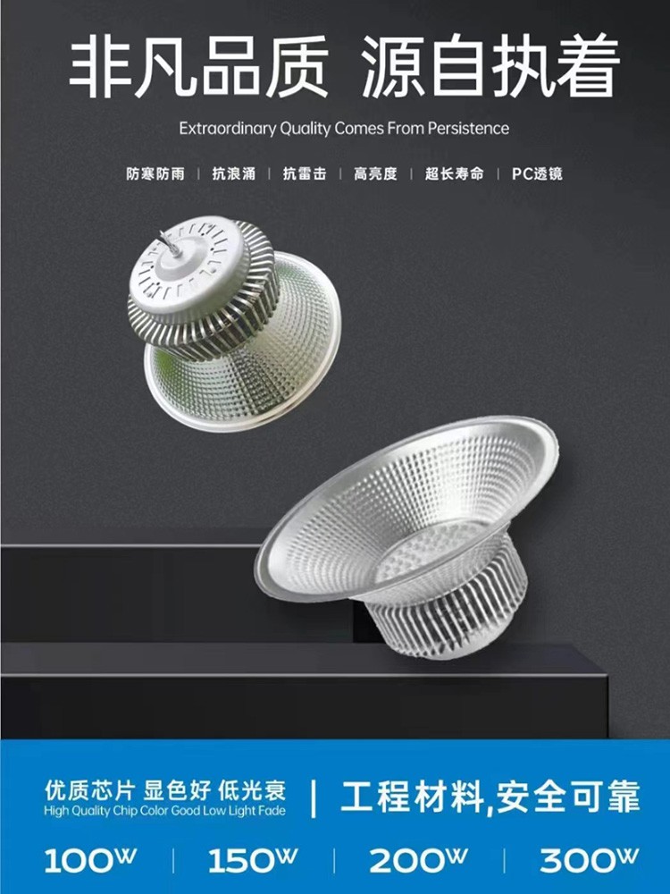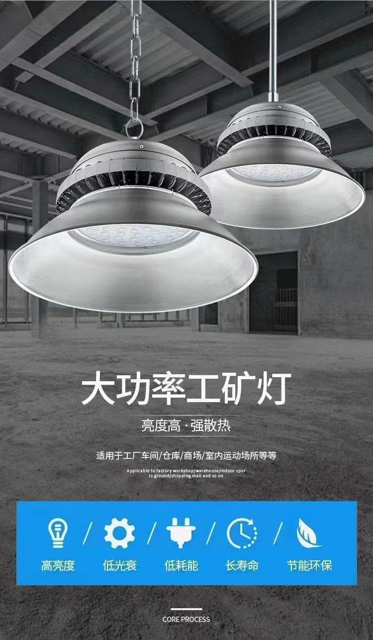 工礦燈,又稱高天棚燈,是一種高能效的室內(nèi) LED 燈具,可以廣泛應(yīng)用在工業(yè)廠房、生產(chǎn)車間、商超、體育娛樂場(chǎng)所以及倉(cāng)庫(kù)等。按照明功能可分為一般照明燈和局部照明燈兩種。為了滿足不同生產(chǎn)作業(yè)的視覺需要和燈具安裝條件的需要,工礦燈的反射器應(yīng)能產(chǎn)生各種寬窄程度的光分布。表面涂漆、涂釉使之呈現(xiàn)白色,和用鋁、玻璃鏡、棱鏡玻璃等材料制成的反射器,都可以得到寬的光分布,適合于大面積、工作面垂直或接近垂直的工作場(chǎng)所。對(duì)于高大廠房和有高大機(jī)床的需要單獨(dú)照明的場(chǎng)所,可采用棱鏡玻璃、鏡面玻璃和拋光鋁等控光性能強(qiáng)的材料制成的反射器,得到窄光束分布。